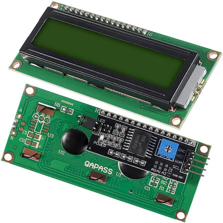 - 16×2 character LCD module with pre-soldered I2C adapter (PCF8574).
