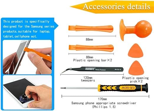 The JM-S81 7 in 1 screwdriver set is a compact, precision repair toolkit designed for electronics and gadget maintenance. Built with CRV steel tips and a thoughtful selection of tools, this multi-function repair set is ideal for technicians, hobbyists, and DIY enthusiasts working on smartphones, tablets, laptops and other small devices.
