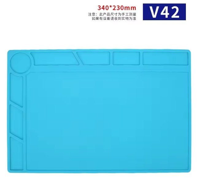 The MECHANIC V42 is a premium antistatic insulation work mat designed for electronics repair, soldering, and precision bench work. Made from eco-friendly silicone, this light blue mat combines high heat resistance with reliable electrostatic discharge protection to keep components and work surfaces safe.