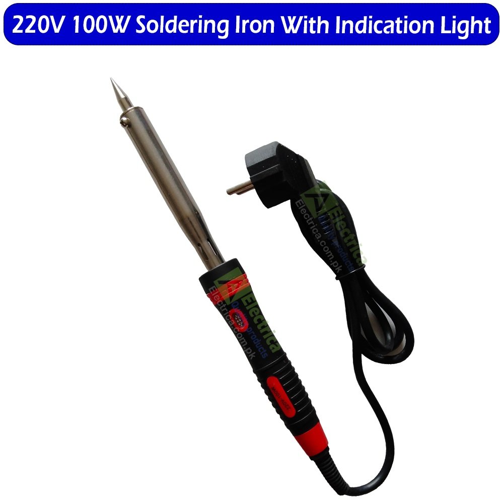 The 100W soldering iron delivers professional-level heat for heavy-duty and hobby soldering tasks. Built with stainless steel and copper components and a comfortable plastic handle, this tool offers durability and consistent performance. An integrated indication light clearly shows when the iron is powered and ready to use.