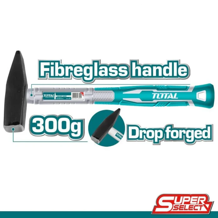 Choose the Total Machinist Hammer 300g THTS71300 for reliable, repeatable performance in precision metalworking tasks. Its combination of a heat treated 45# carbon steel head and a vibration-reducing fiberglass handle makes it a dependable tool for professional machinists and hobbyists alike.