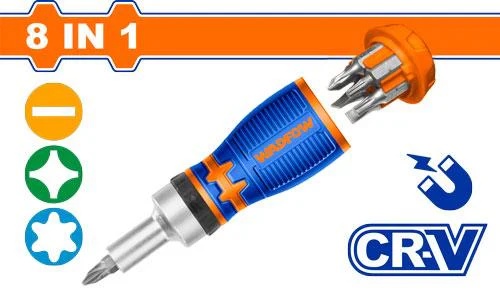 - 8 in 1 stubby ratchet screwdriver design for work in tight or awkward spaces
